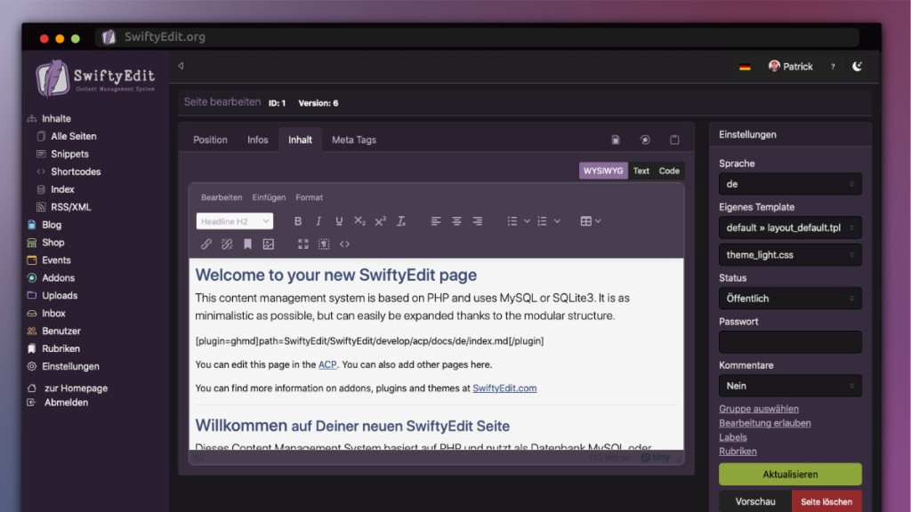 The content management system flatCore is getting on in years and is no longer actively developed. In this article you will learn how to switch to SwiftyEdit (This article is constantly updated and supplemented).